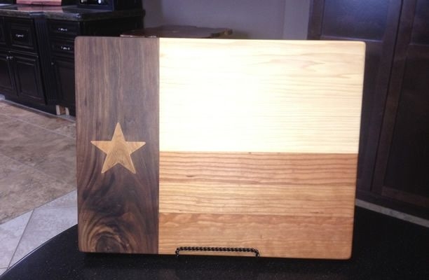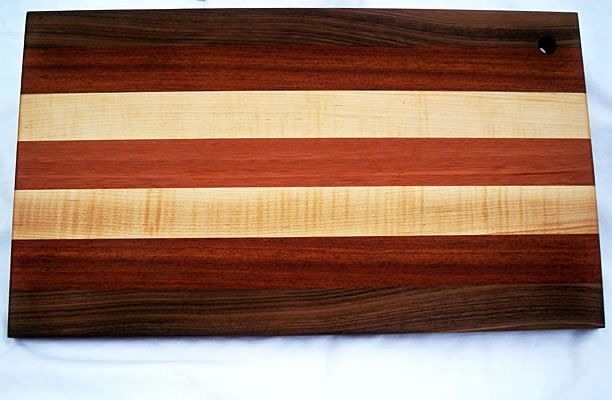 Various hard woods are used including: Walnut, Maple, Pecan, Mesquite, Brazilian Cherry, Lyptus, Red and Oak and others so that no two boards are exactly alike.
